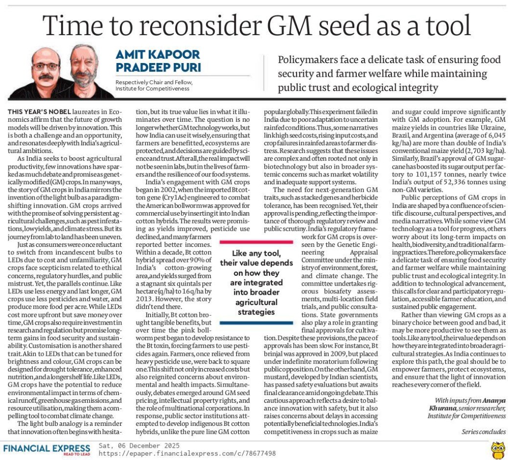 This year’s Nobel laureates in Economics affirm that innovation will drive future economic growth. This is both a challenge and an opportunity, and resonates deeply with India’s agricultural ambitions.