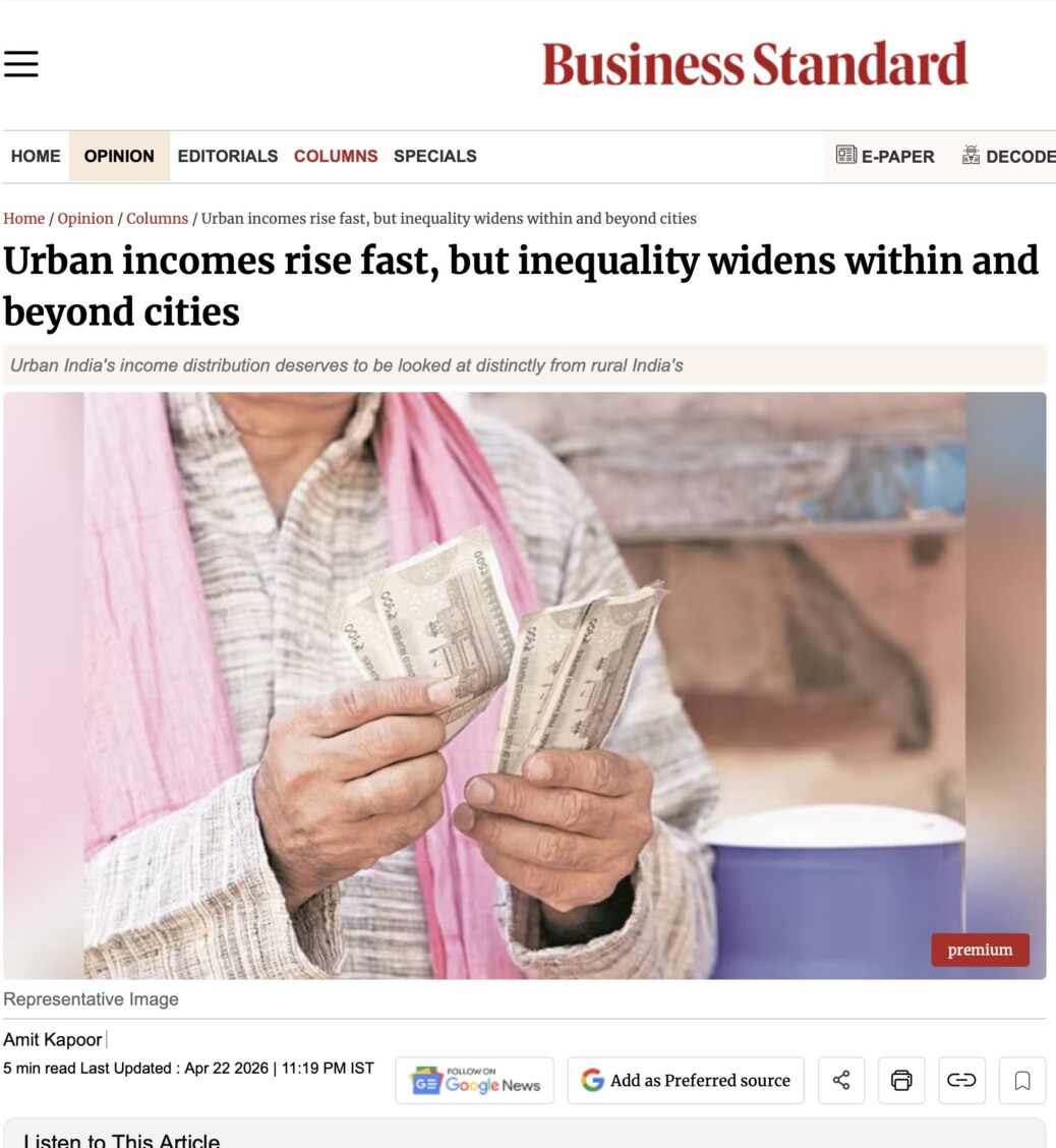 The picture that emerges is of a city in impressive transformation, with important work still ahead. Urban income growth has lifted millions and demonstrated India’s capacity to move indicators at scale and speed. The distributional questions of who is sharing in those gains, at what pace, and through what quality of work are not critiques of that achievement but extensions of it. This means ensuring gains travel further to the rural bottom and that within cities, they reach those on the margins. India has the capacity and momentum to act. The question is whether the opportunity is seized to build a shared urban prosperity.